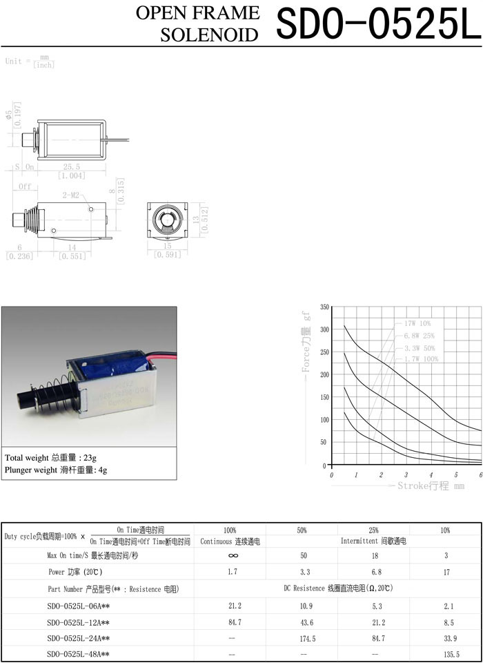 SDO-0525L-06A,SDO-0525L-12A,SDO-0525L-24A,SDO-0525L-48A,直動電磁鐵 |