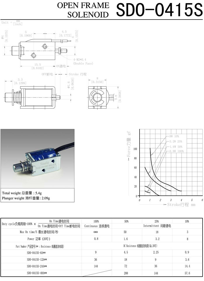SDO-0415S-6A,SDO-0415S-12A,SDO-0415S-24A,SDO-0415S-48A,直動電磁鐵 |