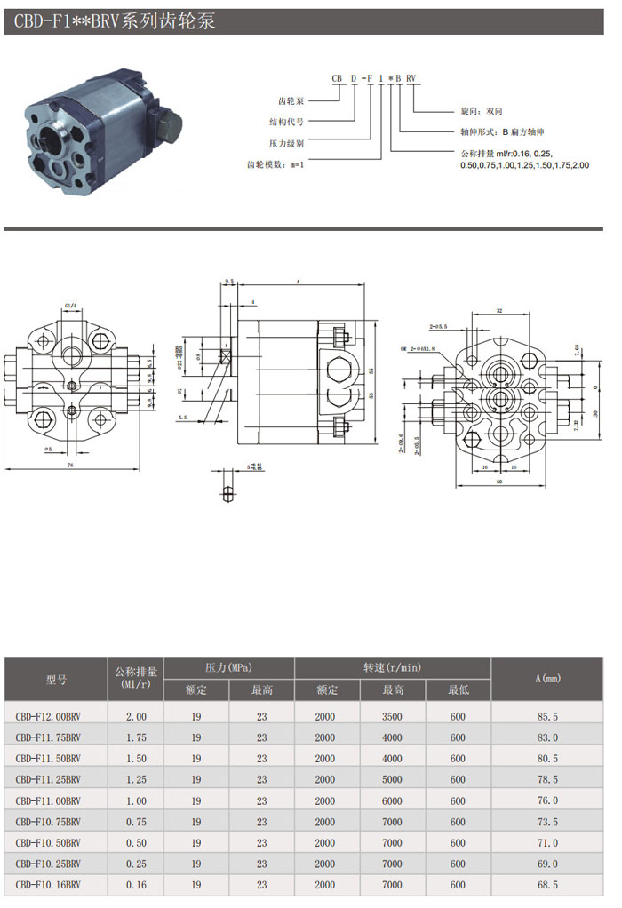 CBD-F10.75BRV,CBD-F10.50BRV,CBD-F10.25BRV,CBD-F10.16BRV,齒輪泵