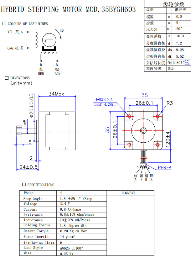 35BYGH317,35BYGH327,35BYGH603,35BYGH308,35BYGH326,混合式步進(jìn)電機(jī)