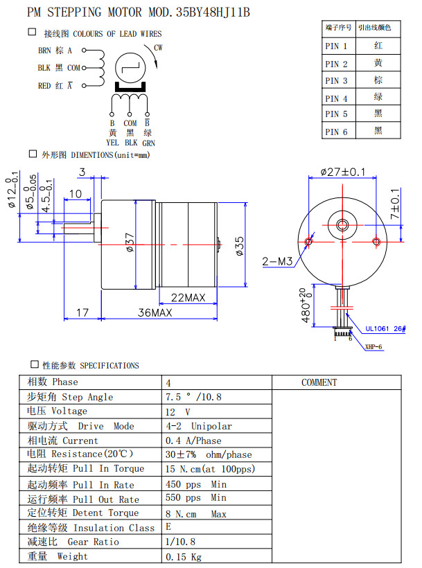 35BY48HJ4.5,35BY48HJ6.3,35BY48HJ11B,35BY48HJ17.5,精密減速步進(jìn)電機(jī)