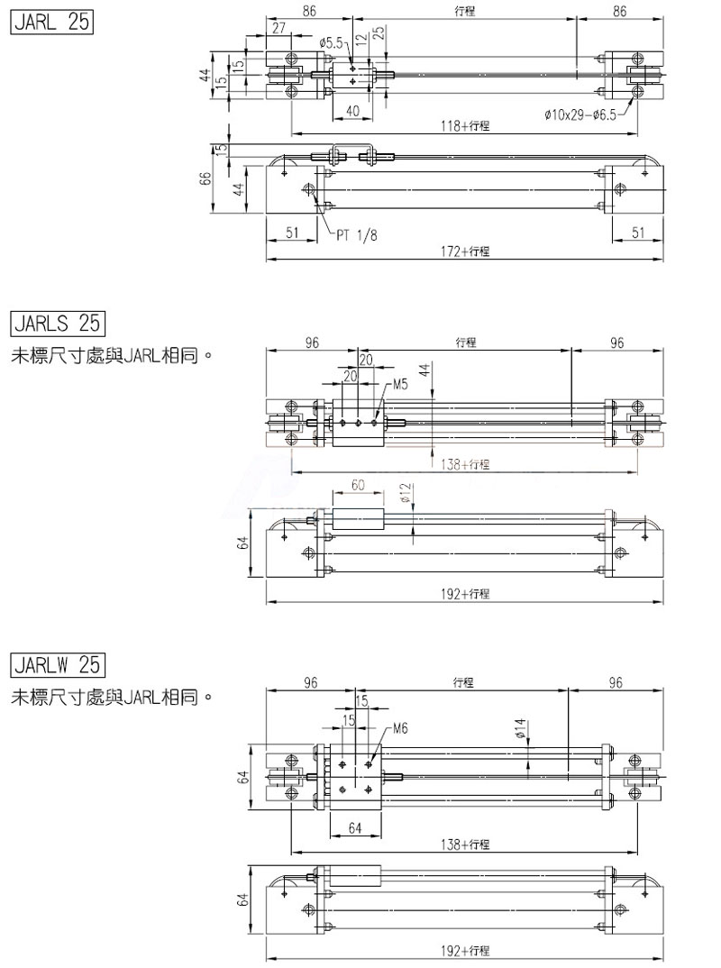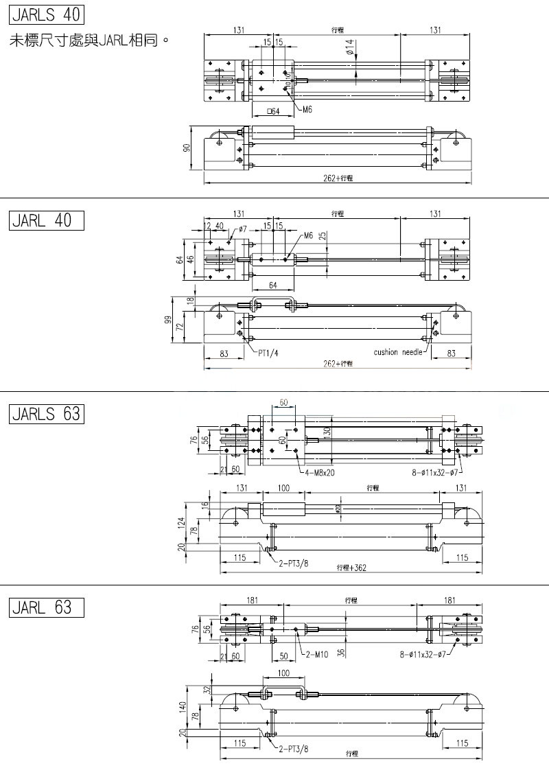 JARL-25,JARL-40,JARLS-25,JARLS-40,JARLW-25,JARLW-40,panix纜繩式無桿氣缸 |