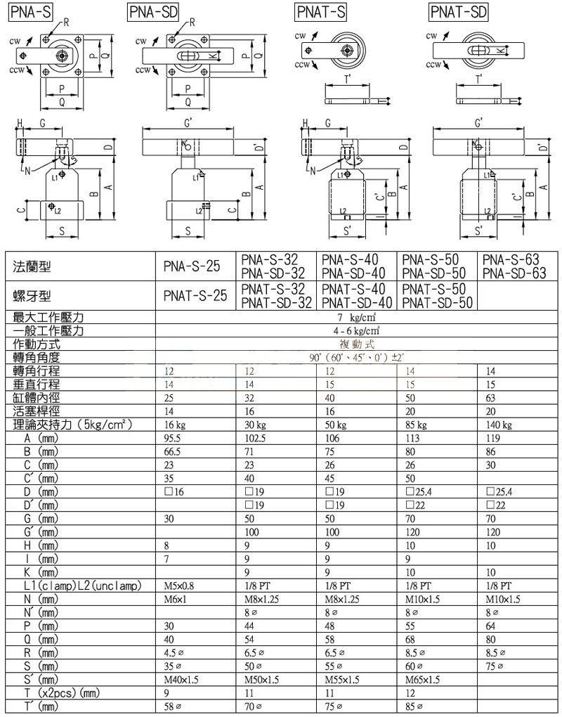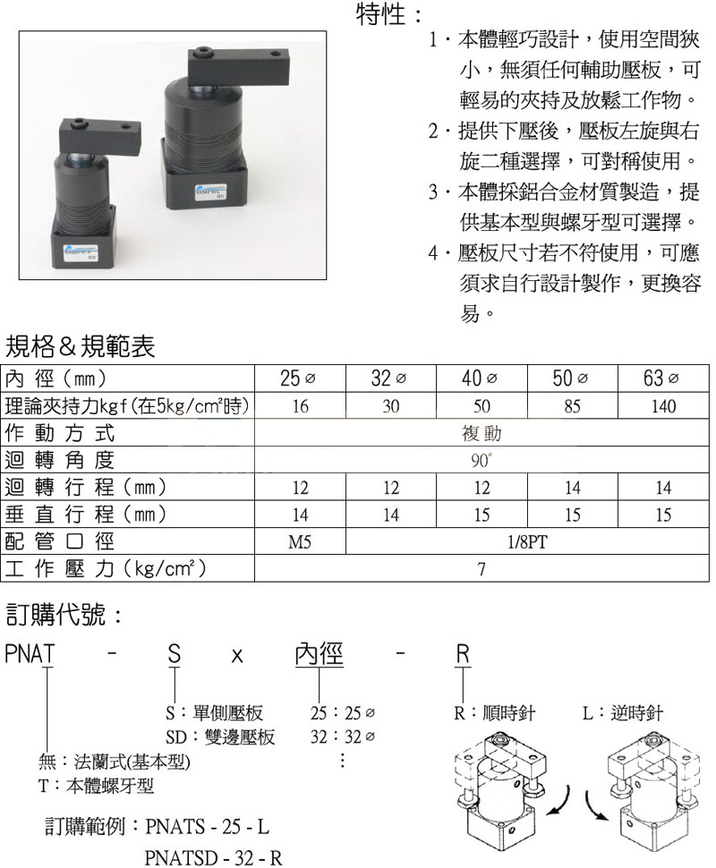 PNA-S-25,PNAT-S-32,PNA-SD-25,PNAT-SD-32,panix空壓回轉(zhuǎn)夾具