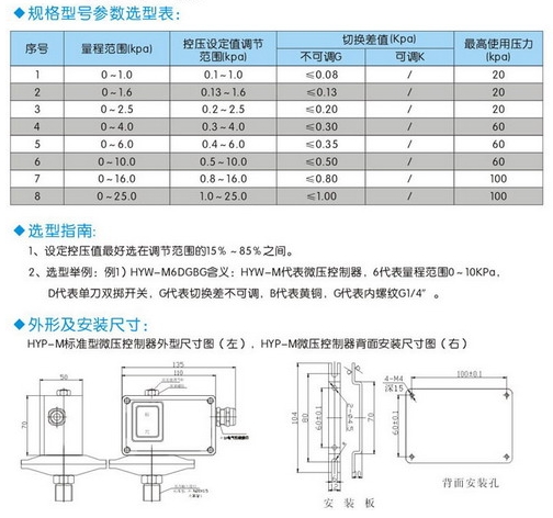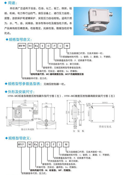 型號: HYW-MC10F1M,HYW-MCEx30F1M,HYP-M10F1M,HYP-M20F1M,微差壓控制器