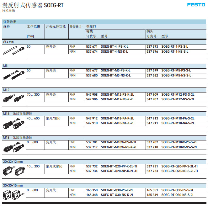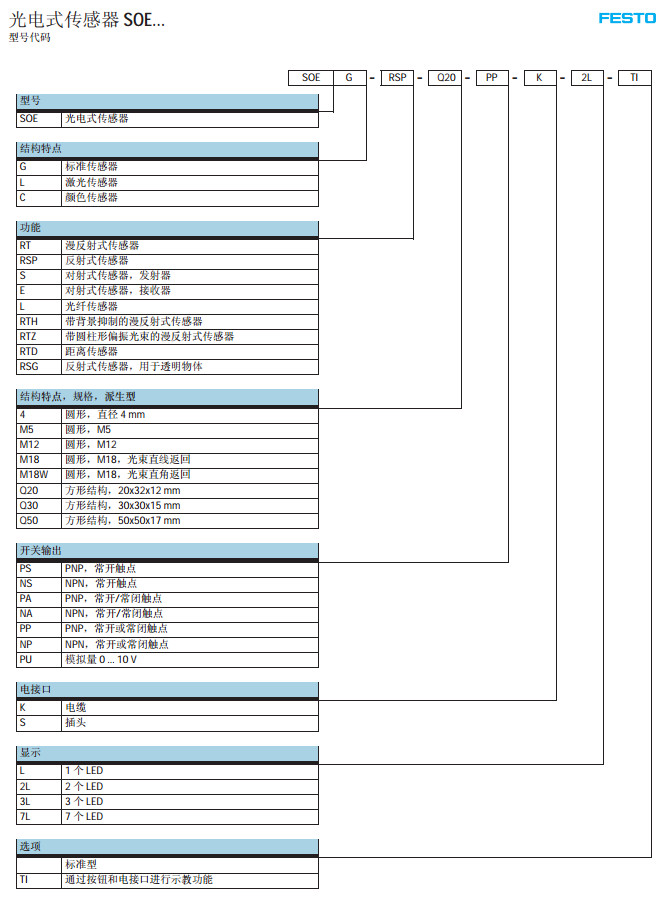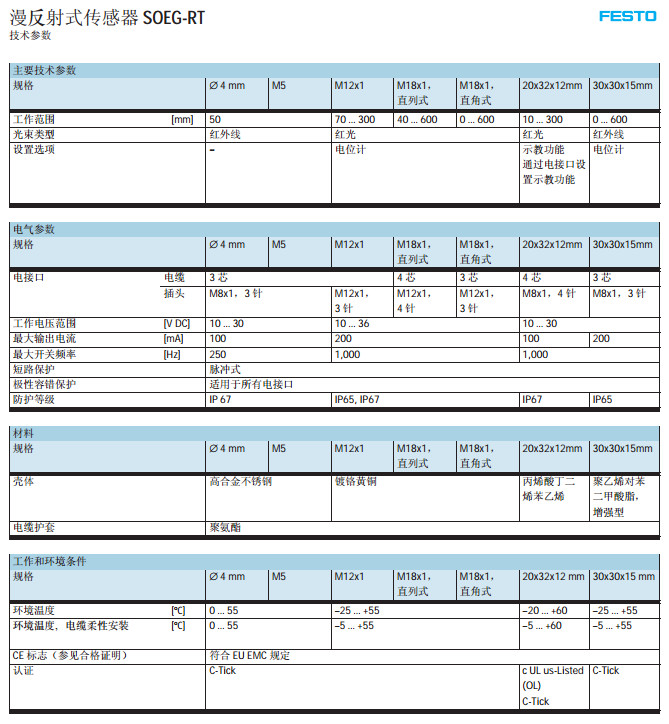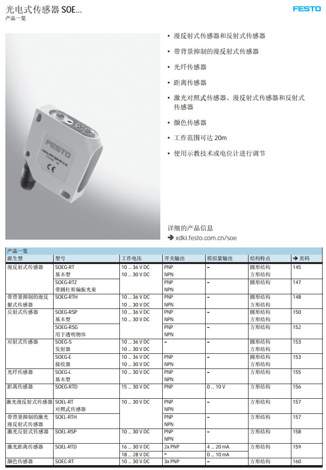 SOEG-RT,SOEG-RSP,SOEC-S,SOEL-E,SOEC-L,SOEL-RTH,festo光電式傳感器 |