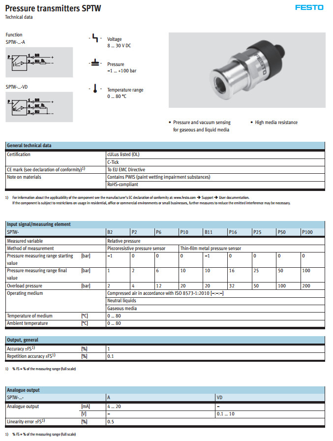 SPTW-B2R-G14-A-M12,SPTW-B11R-G14-A-M12,SPTW-P2R-G14-A-M12,festo壓力傳感器 |
