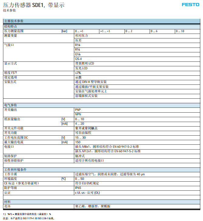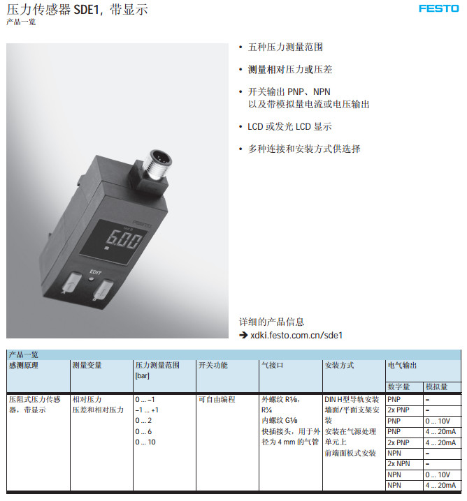 SDE1-V1,SDE1-B2,SDE1-D2,SDE1-D6,SDE1-D10,festo壓力傳感器