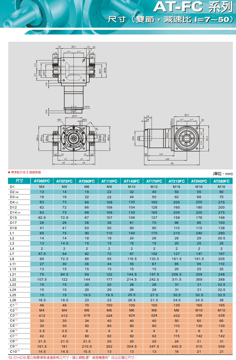 AT065-FC,AT075-FC,AT090-FC,AT110-FC,AT140-FC,AT170-FC,AT210-FC,伺服專用減速機