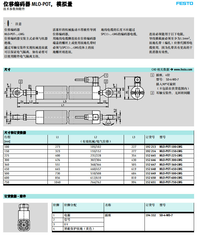 MLO-POT-100,MLO-POT-225,MLO-POT-300,MLO-POT-450,festo位移編碼器 |