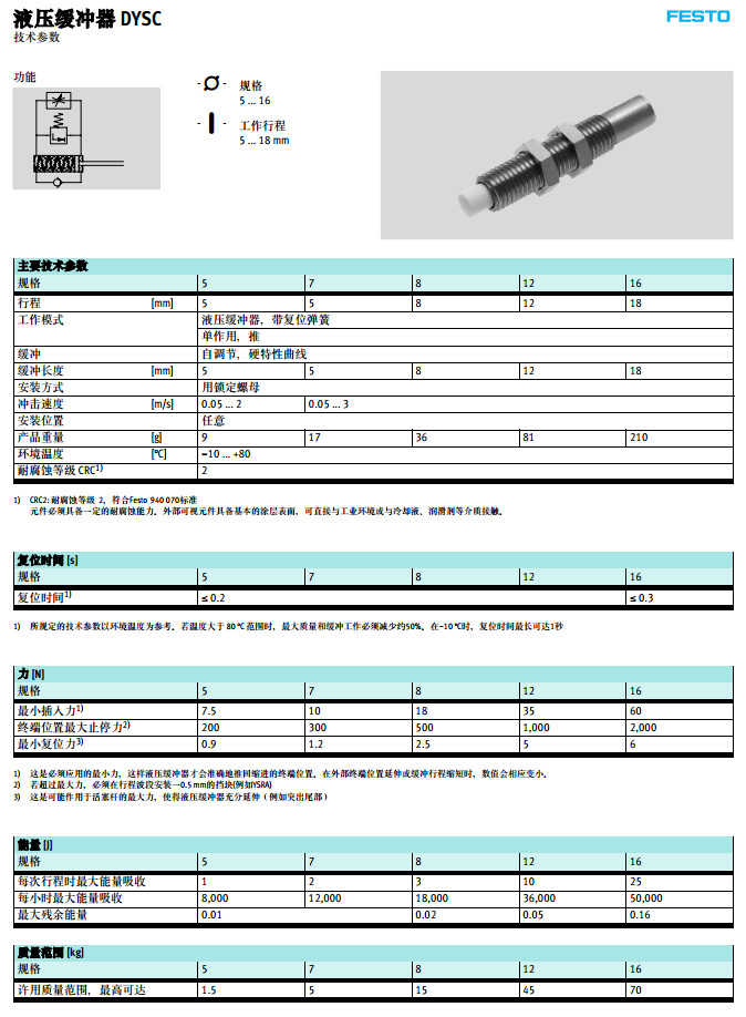 YSC-5-5,DYSC-7-5,DYSC-8-8,DYSC-12-12,DYSC-16-18,festo液壓緩沖器
