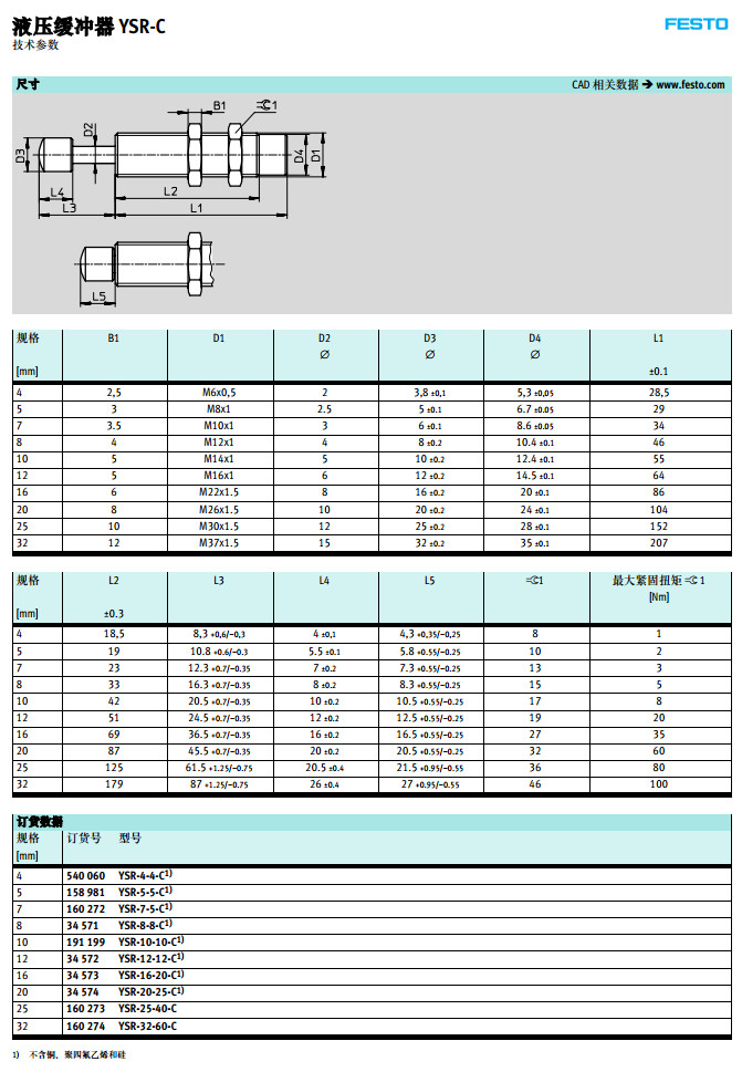 YSR-4,YSR-5,YSR-7,YSR-8,YSR-10,YSR-25,YSR-32,festo液壓緩沖器 |