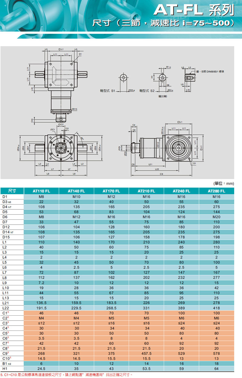 AT170-FL-075-S1,AT210-FL-075-S1,AT240-FL-075-S1,AT280-FL-075-S1,伺服專用減速機(jī)