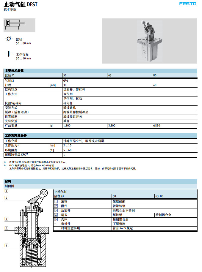 DFST-50-30-DL,DFST-63-30-DL,DFST-80-40-DL,festo止動氣缸