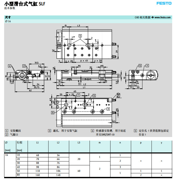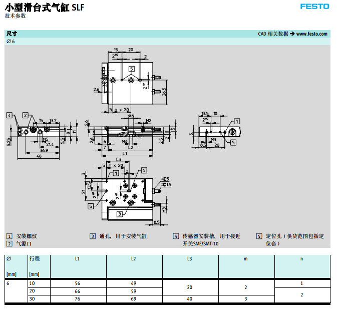 SLF-6-10,SLF-10-10,SLF-16-10,SLF-6-20,SLF-10-30,festo小型滑臺(tái)式氣缸