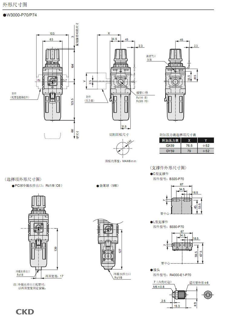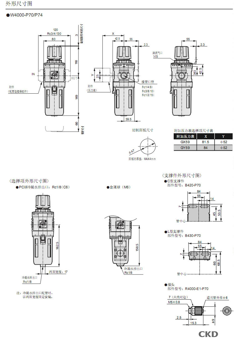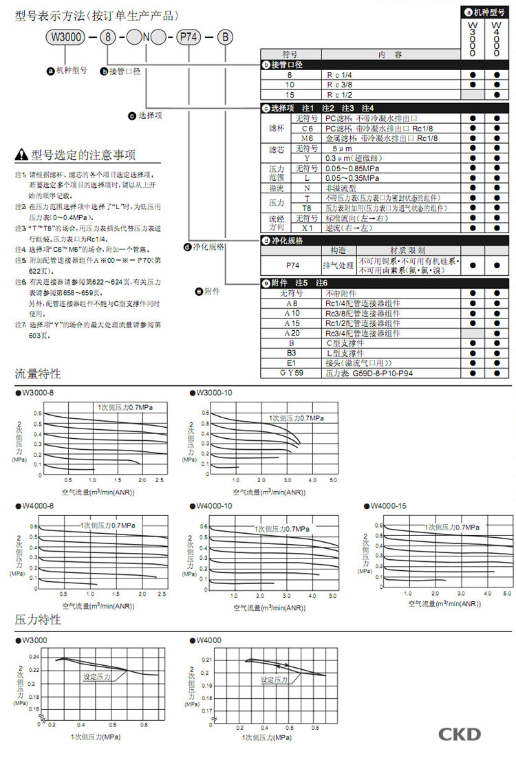 W3000-8,W3000-10,W4000-8,W4000-10,W4000-15,CKD過濾減壓閥