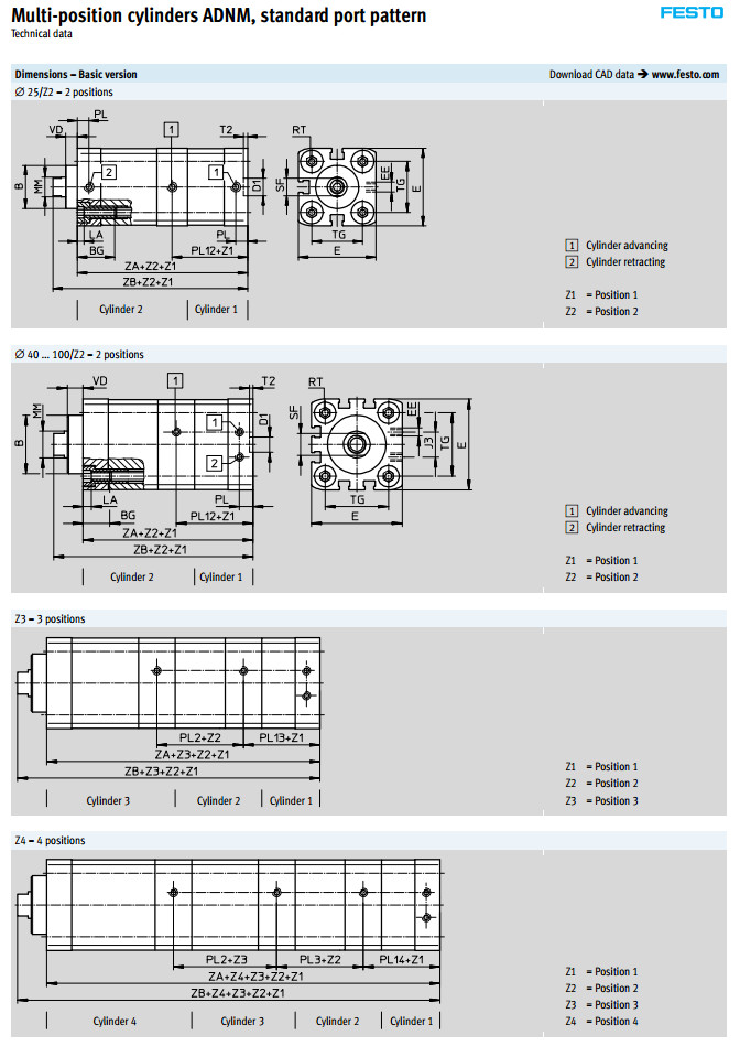 ADNM-25,ADNM-40,ADNM-63,ADNM-100-A-P-A,festo多位置氣缸