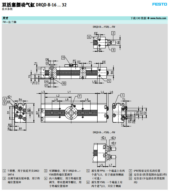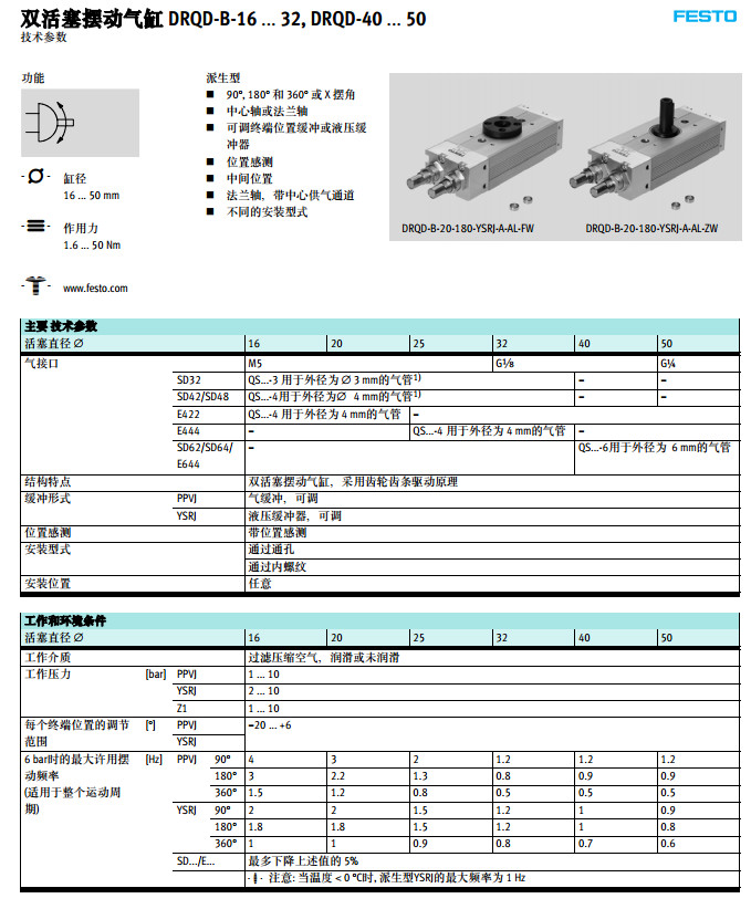 DRQD-B-16,DRQD-B-20,DRQD-B-25,DRQD-B-32,DRQD-B-40,DRQD-B-50,festo擺動(dòng)氣缸