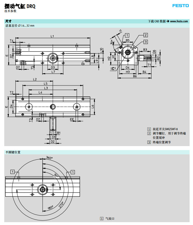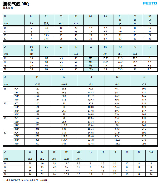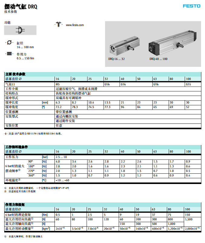 DRQ-16,DRQ-20,DRQ-25,DRQ-32,DRQ-40,DRQ-50,DRQ-63,festo擺動(dòng)氣缸