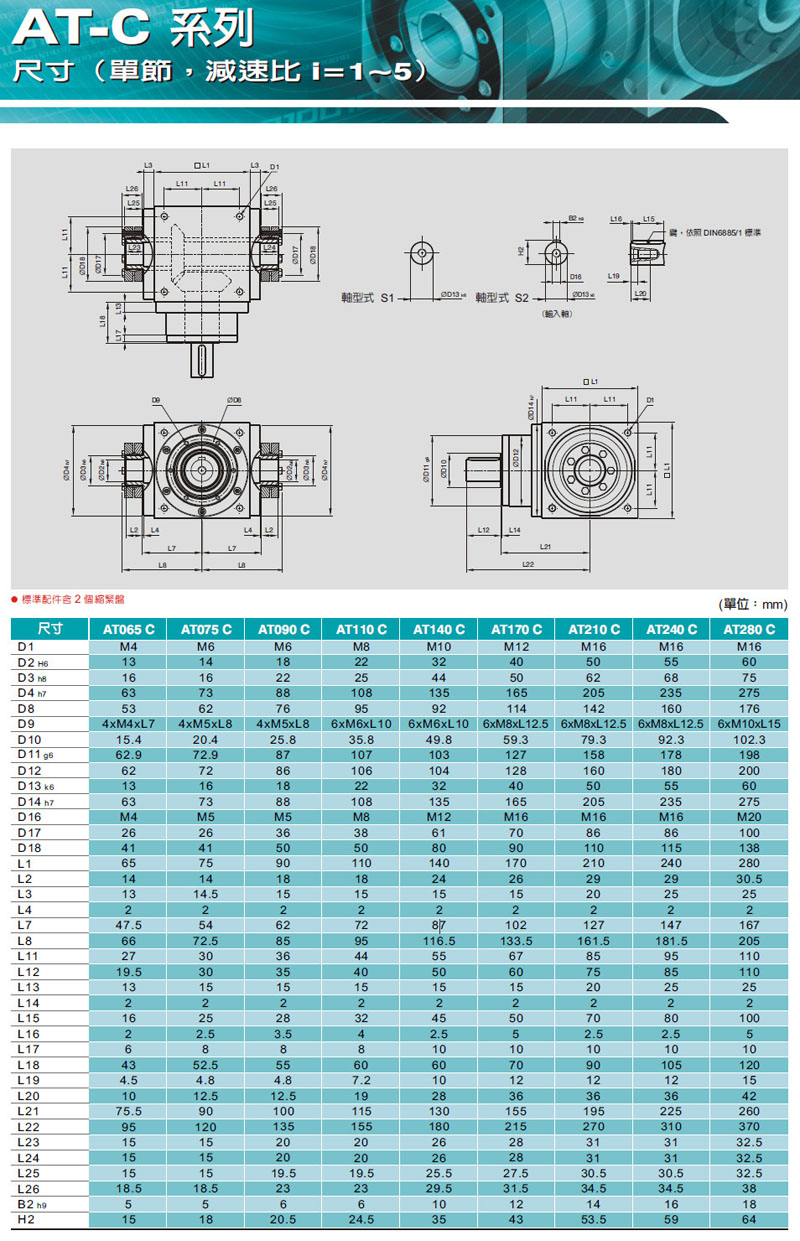 AT065-C,AT075-C,AT090-C,AT110-C,AT140-C,AT170-C,AT210-C,伺服專用減速機