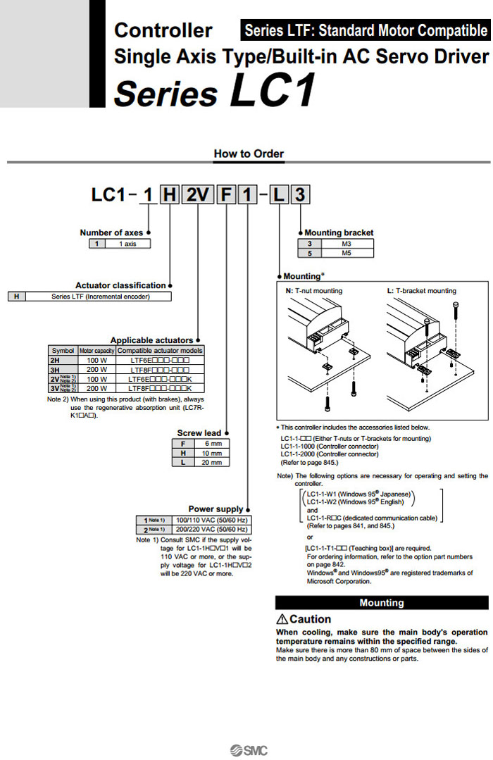 LC1-1H2HF1-N3,LC1-1H3HF1-N3,LC1-1H2VF1-N3,LC1-1H3VF1-N3,LC1-1H2HH1-N3,SMC伺服電機(jī)用控制器
