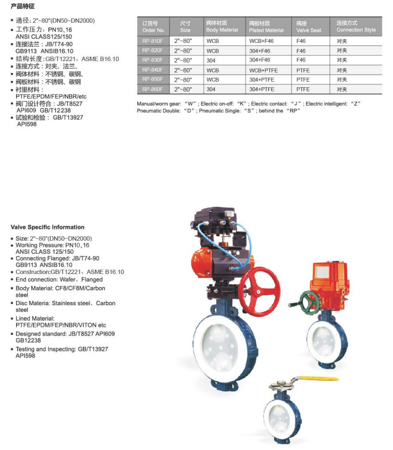 RP-810F,RP-820F,RP-830F,RP-840F,RP-850F,RP-860F,襯膠襯氟蝶閥