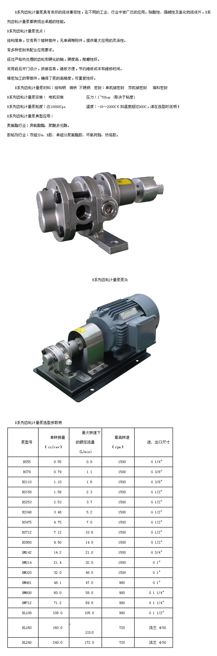 BS55,BS79,BS110,BS158,BS253,BS348,BS475,BS712,BS950,BM142,BM214,BM320,BL108,BL160,BL240,齒輪計量泵