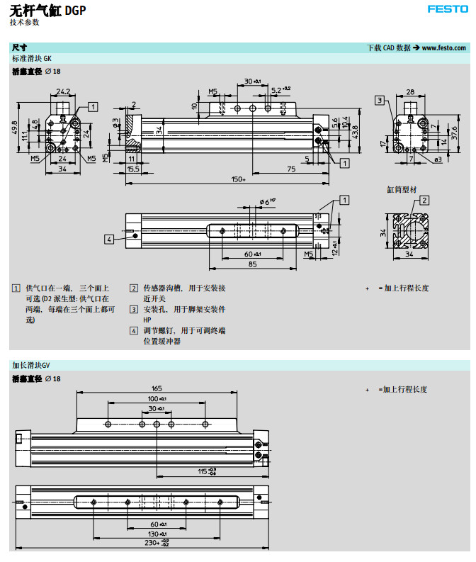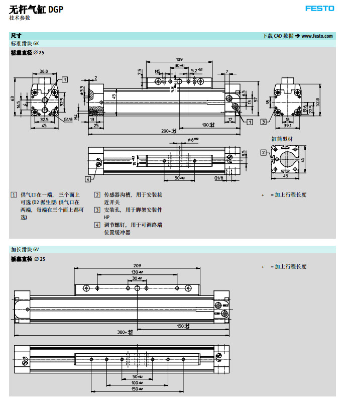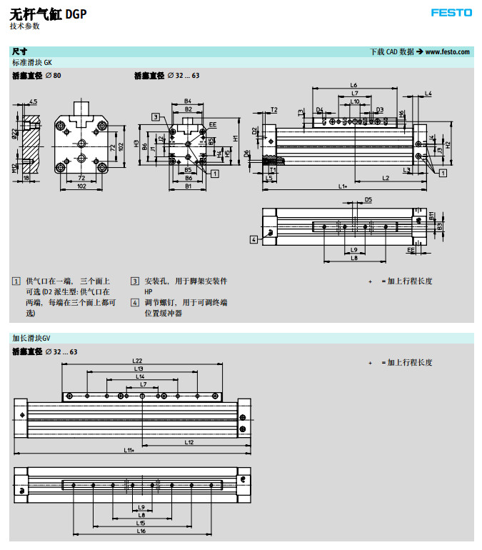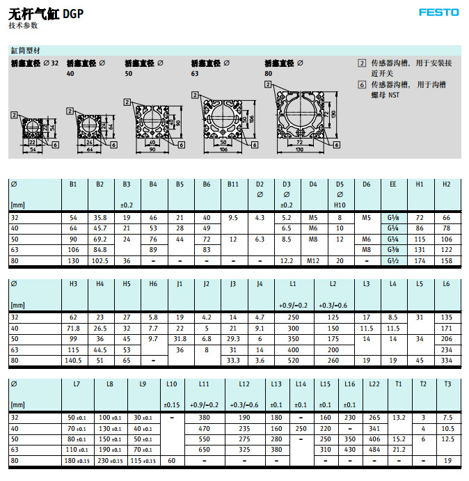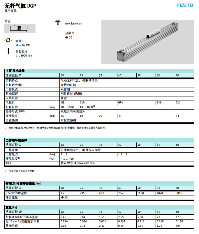 DGP-18,DGP-25,DGP-32,DGP-40,DGP-50,DGP-63,DGP-80,festo無桿氣缸
