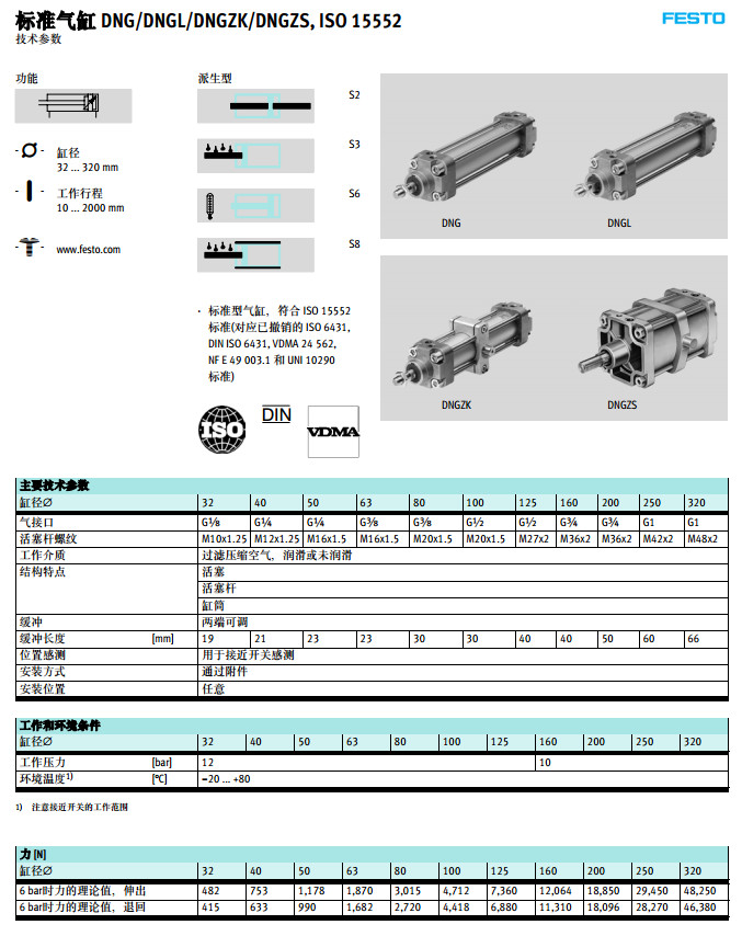 DNG-32,DNG-40,DNGL-50,DNGLZ-63,DNGZK-80,DNGZS-100,festo標準氣缸