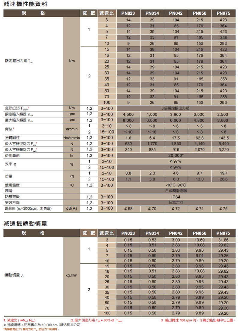 PN023-03,PN034-04,PN042-05,PN056-07,PN075-010,伺服專用減速機