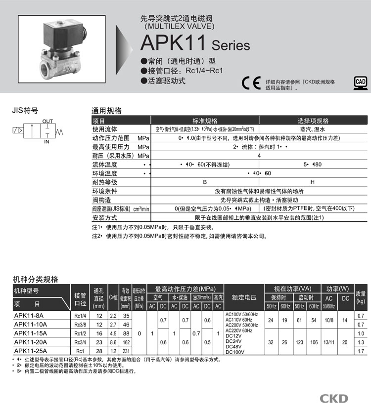 APK11-15A,APK11-15A,APK11-15A,APK11-20A,APK11-25A,CKD先導(dǎo)式2通電磁閥 |