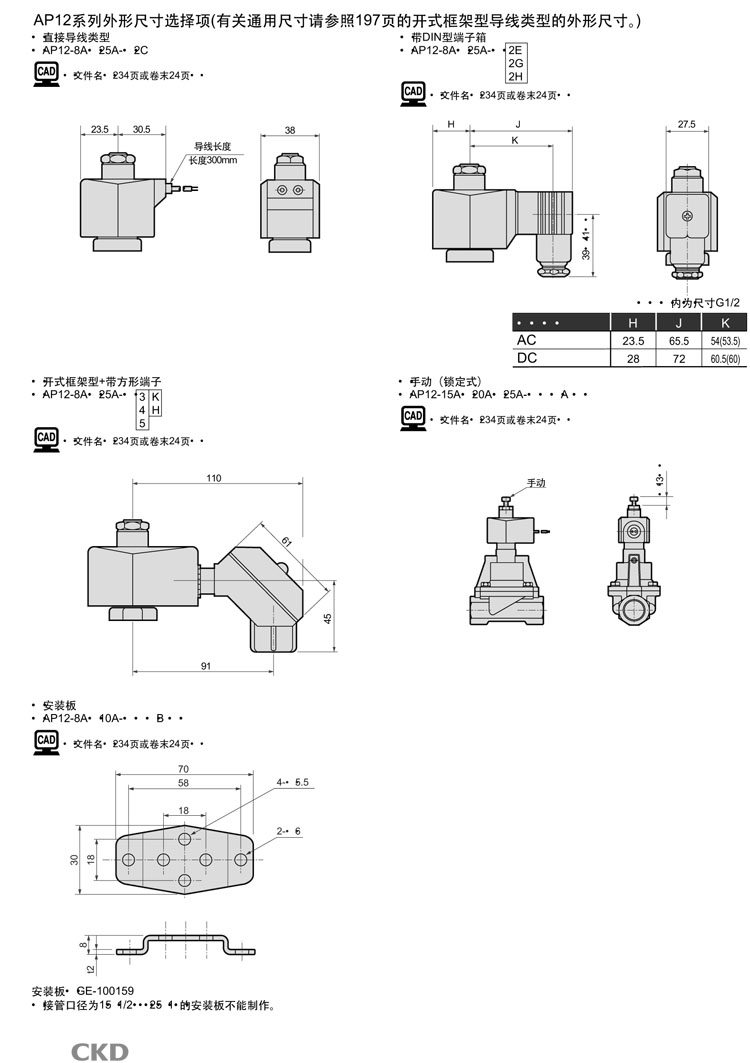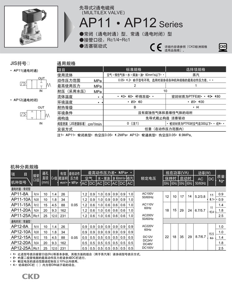 AP12-25A-N4A AP12-25A-N4K AP12-25A-N4H AP12-25A-N5A AP12-25A-N5K AP12-25A-N5H CKD先導(dǎo)式式2通電磁閥