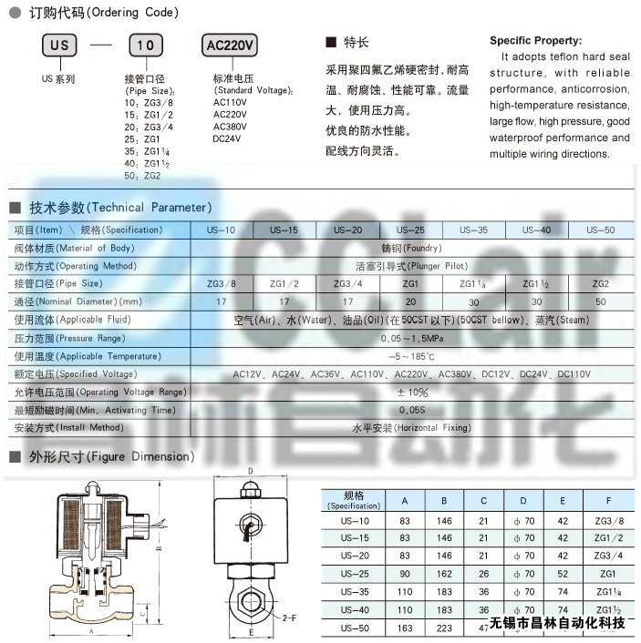 US-10 G3/8,US-15 G1/2,US-20 G3/4,US-25 G1,US-35 GI1/4,US-40 GI1/2,US-50,電磁閥