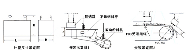 | 型號參數(shù)項目 | 適應帶寬 | 懸掛高度 | 適應帶速 | 物料厚度 | 重量Kg | 外型尺寸 | ||