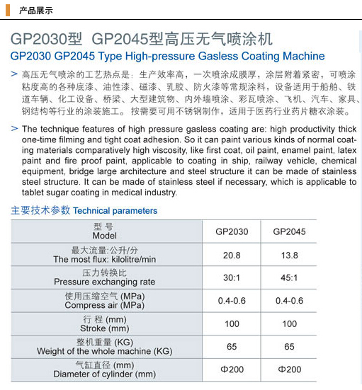 GP2030,GP2045,高壓無(wú)氣噴涂機(jī)