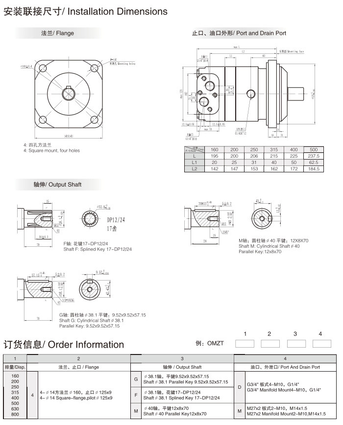 OMZT160,OMZT200,OMZT250,OMZT315,OMZT400,OMZT500,OMZT630,OMZT800,擺線馬達