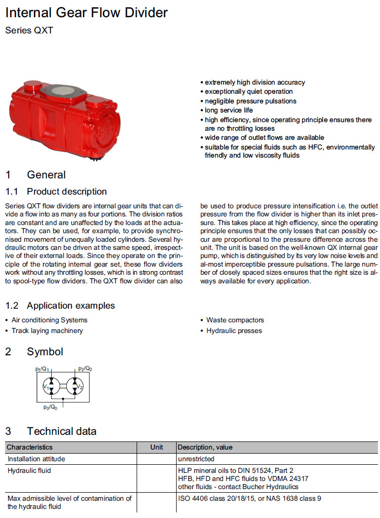 QXT22-012,QXT32-012,QXT42-012,QXT52-012,QXT62-012,QXT82-012,Bucher內(nèi)齒輪流量分配器