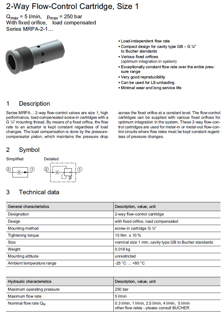 MRPA-2-1-50,MRPA-2-1-40,MRPA-2-1-25,MRPA-2-1-10,MRPA-2-1-03,Bucher流量閥