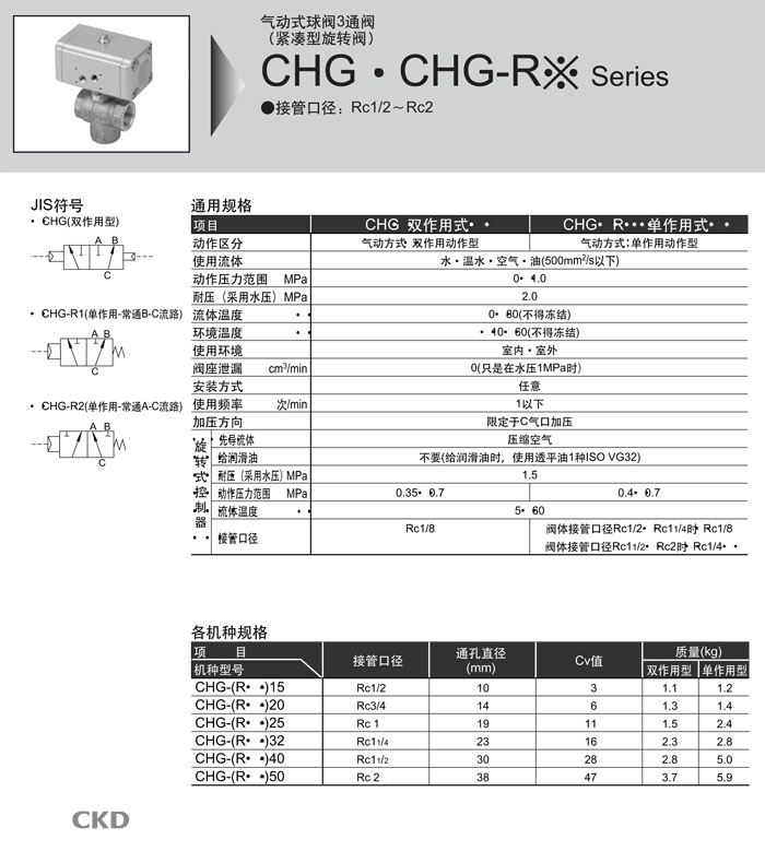 CHG-R1-15-E,CHG-R1-20-E,CHG-R1-25-E,CHG-R1-32-E,CHG-R1-40-E,CHG-R1-50-E,CKD氣動(dòng)式球閥3通閥