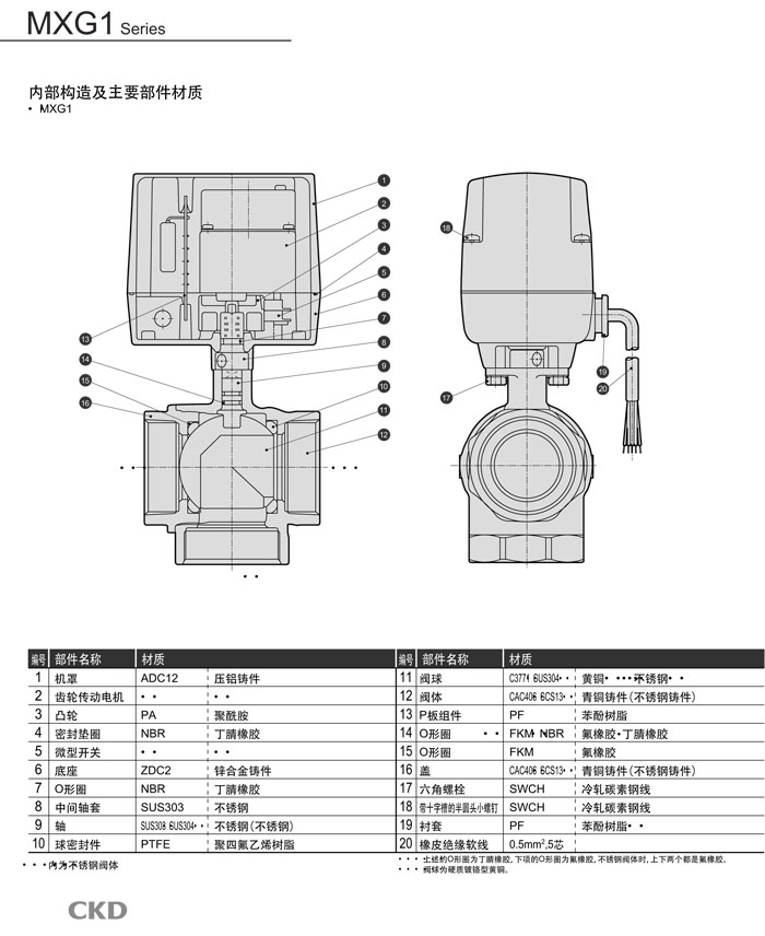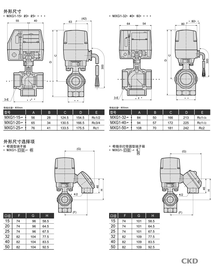 MXG1-15,MXG1-20,MXG1-25,MXG1-32,MXG1-40,MXG1-50,CKD電動(dòng)式球閥3通閥