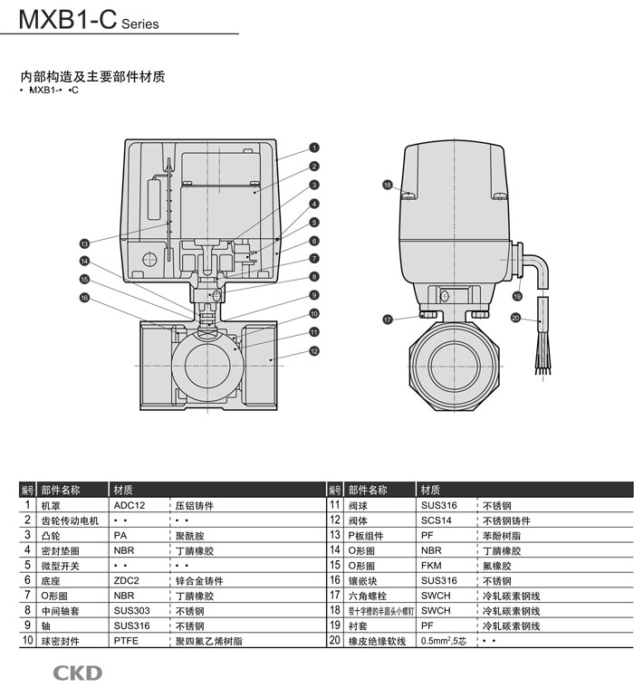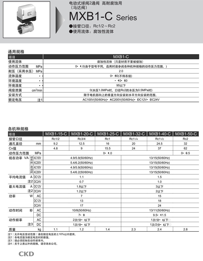 MXB1-15-C,MXB1-20-C,MXB1-25-C,MXB1-32-C,MXB1-40-C,MXB1-50-C,CKD電動式球閥2通閥