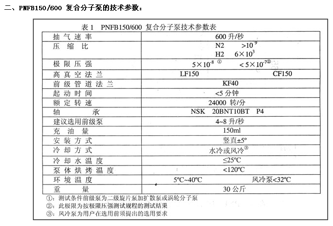 二、PNFB150/600 復合分子泵的技術參數(shù):