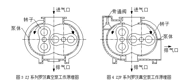 一、ZJ系列羅茨真空泵是利用一對(duì)8字型轉(zhuǎn)子在泵殼中保持一定的間隙,作等速反向旋轉(zhuǎn)而產(chǎn)生吸氣和排氣作用的(見圖3)。