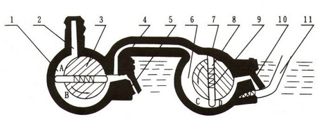 如被抽除的氣體中含有較高的蒸汽氣體時(shí),在氣體受到壓縮而其蒸汽的分壓強(qiáng)超過(guò)此蒸汽在泵內(nèi)溫度下的飽和壓強(qiáng)時(shí),此時(shí)蒸氣被壓縮成為液體,旋片式真空泵無(wú)法排出,而混在真空油內(nèi),使泵的性能大大降低。如果摻入適量的空氣,使蒸汽在受到壓縮時(shí),其分壓強(qiáng)也低于泵溫的飽和壓強(qiáng),則蒸汽在變成液體前就能被排出泵外去,故本系列2X-4以上的泵都裝有能放入一定量氣體的摻氣閥11見(jiàn)圖1
