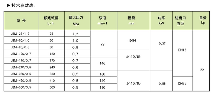 JBM-25/1.2,JBM-50/1.0,JBM-80/0.8,JBM-120/0.7,JBM-170/0.7,JBM-240/0.6,機械隔膜式計量泵