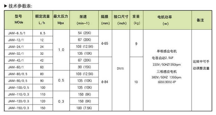 JAM-6.5/1,JAM-12/1,JAM-24/1,JAM-32/1,JAM-42/1,JAM-60/1,JAM-80/0.5,機(jī)械隔膜式計(jì)量泵