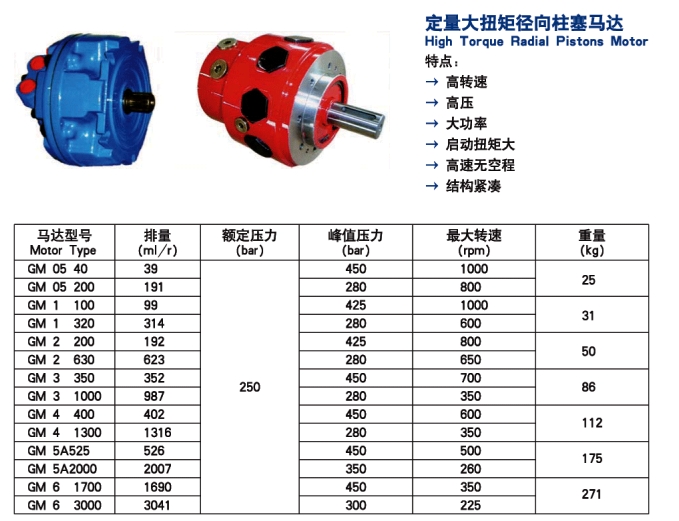 GM-05-40,GM-05-200,GM-1-100,GM-1-320,GM-2-200,GM-2-630,GM-3-350,定量大扭矩徑向柱塞馬達(dá)