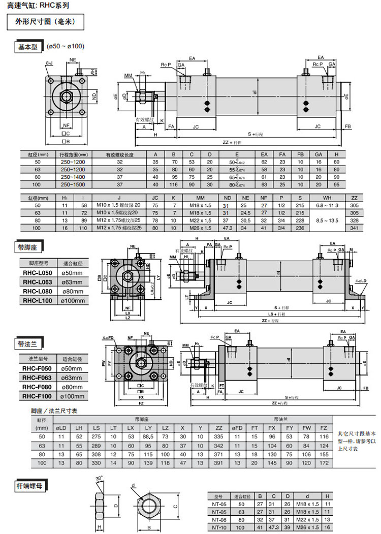 RHCB50-200,RHCL50-200,RHCF50-200,RHCG50-200,RHCB63-200,RHCL63-200,RHCF63-200,RHCG63-200,