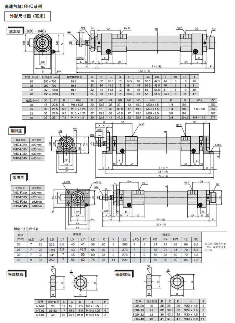 RHCB20-200,RHCL20-200,RHCF20-200,RHCG20-200,RHCB25-200,RHCL25-200,RHCF25-200,RHCG25-200,SMC高速氣缸