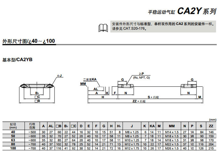 CDA2YB50-500,CDA2YB50-600,CDA2YB63-25,CDA2YB63-75,CDA2YB63-100,CDA2YB63-125,CDA2YB63-150,CDA2YB63-175,