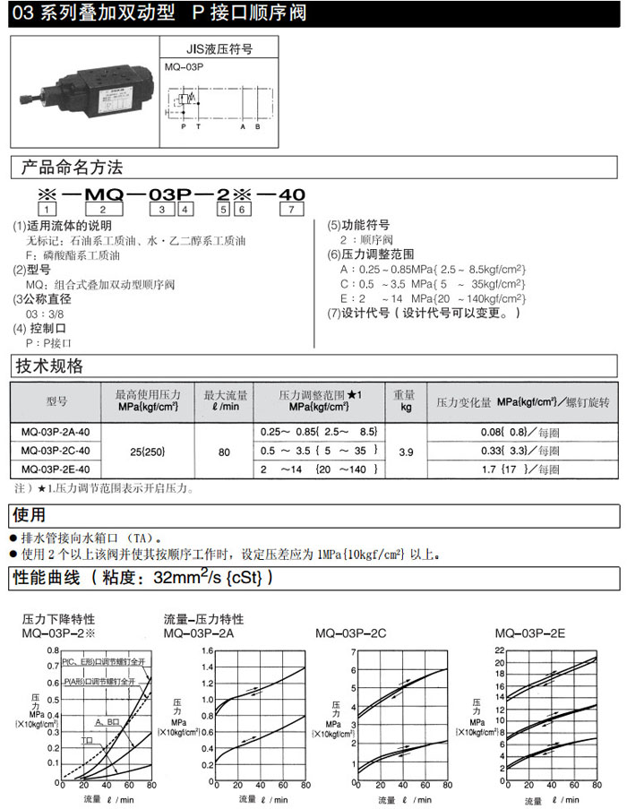 MQ-03P-2A-40,MQ-03P-2C-40,MQ-03P-2E-40,DAIKIN疊加雙動型順序閥
